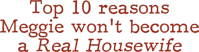 Thankfully, after talking through it with him and getting to a point where he truly believes I won’t become one, we’re now able to joke about it. As further proof that I have no desire to become a Real Housewife, I thought I’d post my Top 10 Reasons here – should Adam ever need to be reminded in the future 🙂