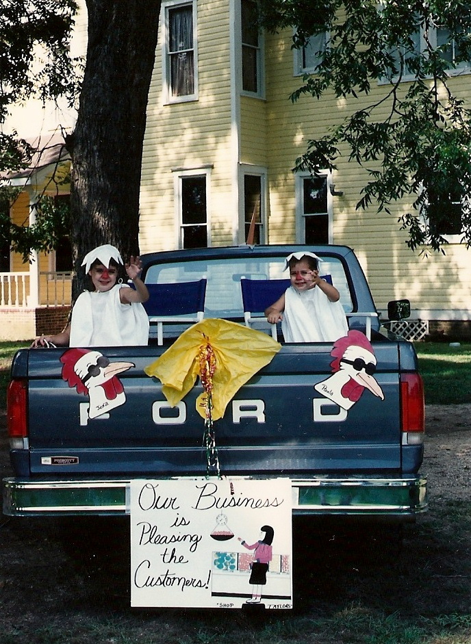 Growing up my dad owned a grocery store, Taylor’s Grocery, which eventually became Taylor’s Big Star. This grocery store was a part of my family for most of my adolescence. As a kid, it was AWESOME to have the store opened after hours by your dad to run wild in & get everything for “free”. Frozen pizza, popcorn, coke, magazines, comics. That store was my oyster. My sister and I were even the store mascots during the annual Chicken and Egg parade.