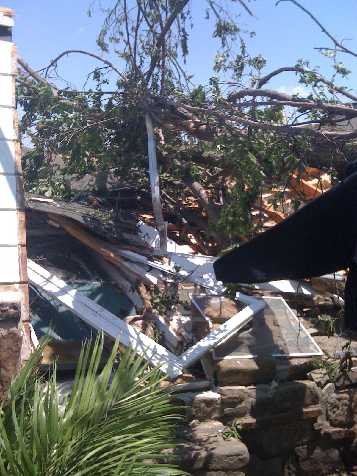 His parents were asleep when the storm was about to hit. They woke up with only enough time to ride the storm out in the floor between their closet and bed. They escaped with minor scrapes and bruising. It could have been much worse.