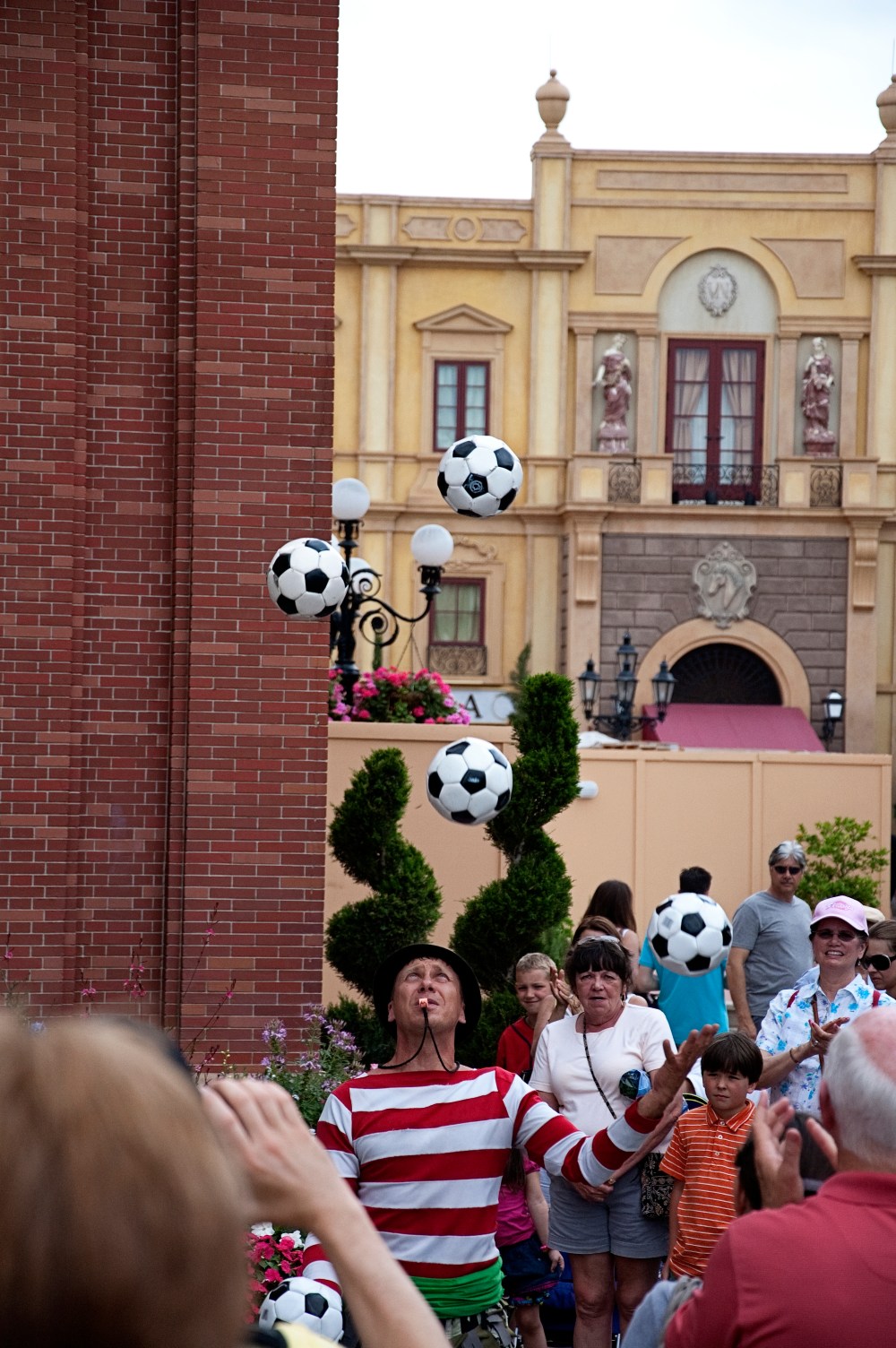 Throughout our trip, it became evident that EPCOT really didn’t want us to stay long. Every time we entered the park we had to rush through to avoid getting rained on. So after our lunch in Germany what did we do? Walked really fast through the rest of the World Showcase, snapping minimal pictures along the way, and took the bus back to our hotel. The downpour started immediately after we closed our room door. At least we got to see an awesome juggler in Italy!