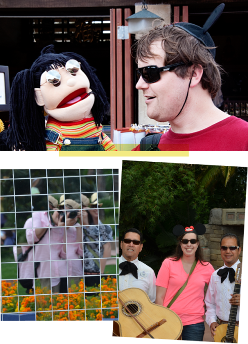 After finishing our meal, our hopes of the rain letting up was drenched – literally. So we walked across the street to ride the indoor boat ride, Gran Fiesta Tour Starring the Three Caballeros. By the time the boat ride was done, the rain had let up some and we were able to have some picture fun as we headed to the monorail for the Dessert Party at The Grand Floridian.
