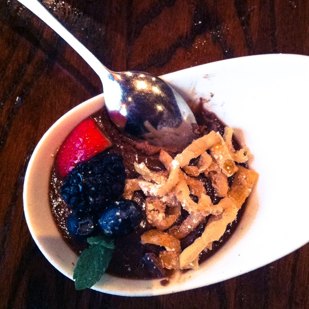 This was more than enough food for us to eat and we ended up sending about half of it back when it was time for the next course, dessert!! Adam ordered the Crema de Chocolate “Abuelita” which was chocolate custard served with crunchy buñuelo strips and caramel syrup.